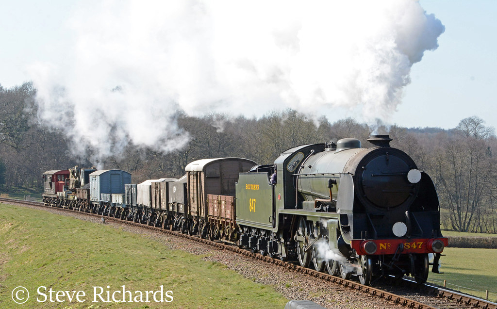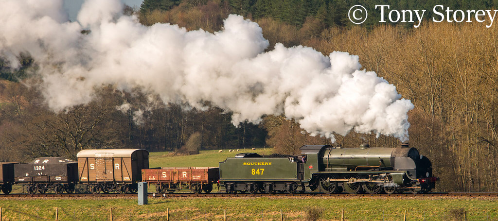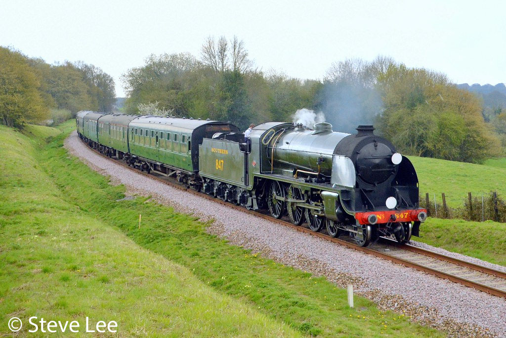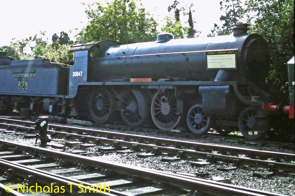 The tender was originally that of 30828 (as restored at Eastleigh). 30828 has 30830’s tender, 30847’s 6 wheel tender (Ex No.797 King Arthur class Sir Blamor De Ganis) was bought by the Mid Hants Railway. The 847 team had to chop the flares on their tender to convert it to the later straight sided type. 30847 was in fact the last S15 ever built, being completed in 1936, and with the 8 wheel tender looks as it did from when originally outshopped up until a tender change in June 1960.