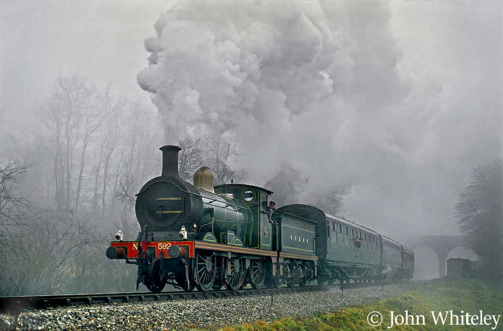 With the last three surviving in departmental service at Ashford, The Wainwright ‘C’ Preservation Society was formed in 1962, and in December 1966 was able to buy 592 (as DS239) for £1,420. Kept initially in the old running shed at Ashford where restoration work was undertaken before moving to the Bluebell Railway on long term loan in August 1970.