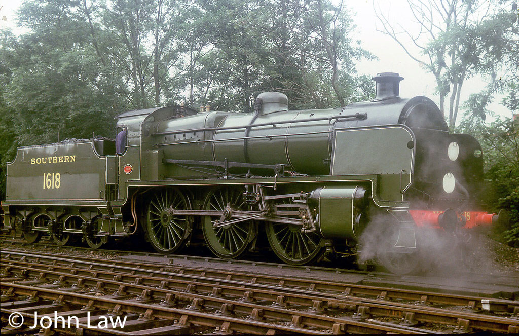 From this base the Southern Mogul Preservation Society as it was then known, were able to complete the job. The only snag was that the track at the Kent and East Sussex was not built to take the weight of such a locomotive; it always had been a light railway in the truest sense of the word. When 1618 was steamed, all that could be done was demonstration shunting in Tenterden station. This frustrating situation was resolved in May 1977, 3 years after the first steaming, when the society decided to move to the Bluebell Railway, also in Sussex, but with much more substantial track, sufficient in fact to cater for full running of 1618 without any problems.