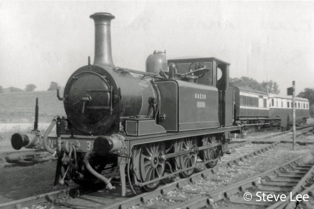 The Rother Valley Railway was opened in 1900 became the Kent & East Sussex Railway in 1904 when the name of the railway was changed. As number 3 it stayed there but lost its name around 1935. In 1931 it was withdrawn from service and languished rusting on a grassy sidings at Rolvenden until in 1932/33 when another Terrier (71 Wapping then running as 5 Rolvenden) was cannibalised for parts to restore Bodiam to service but without the nameplate.