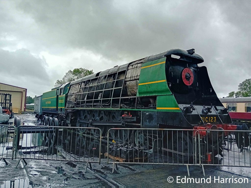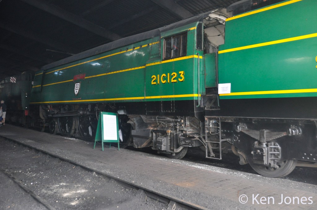 34023 was on static display on the Bluebell Railway whilst awaiting overhaul. A new firebox is being made at South Devon Railway Engineering along with four others for 34039, 34059, 34101 and a spare.
