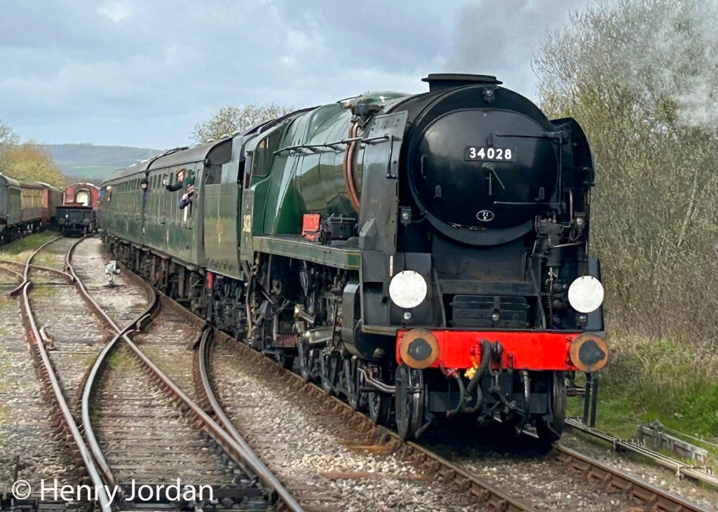 The locomotive was taken out of service in August 2021 when a ten-inch long crack an eighth of an inch thick was discovered on its leading bogie frames. It is not expected to be out of service for long as the Mid Hants Railway have agreed to loan the bogie of its West Country locomotive 34007 Wadebridge whist repairs are made to 34028 Eddystone.
