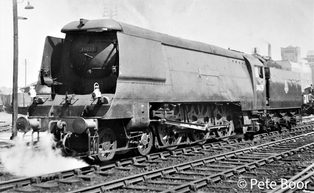 Locomotive 21C139 was built in 1946 at the Southern Railways works in Brighton and entered traffic on in full Southern malachite green livery. It was based at Stewarts Lane shed working trains principally from London Victoria station to the Kent coast resorts of Margate and Ramsgate and the ports of Folkestone and Dover. 21C139 received the name Boscastle some time between 1947 and 1948. After nationalisation in 1948 Boscastle received the number 34039 and between July and September became the regular engine on the prestigious Golden Arrow Pullman train.