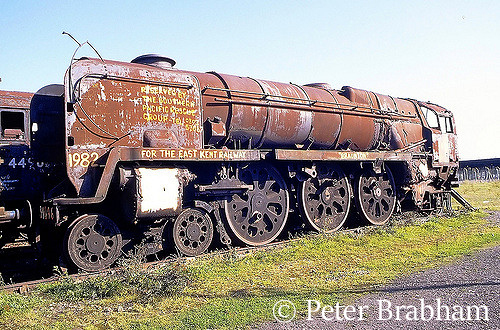 It left Barry in 1988 and was moved to Brighton where an abortive attempt was made to restore the locomotive which by then was missing many parts. The Brighton project was based at the Brighton Locomotive Works at the former Pullman works at Preston Park and also involved 34073 249 Squadron, 35009 Shaw Savill and 35011 General Steam Navigation.