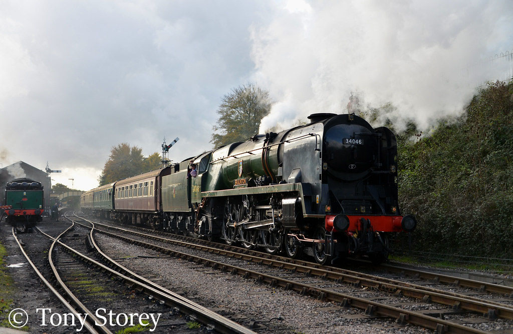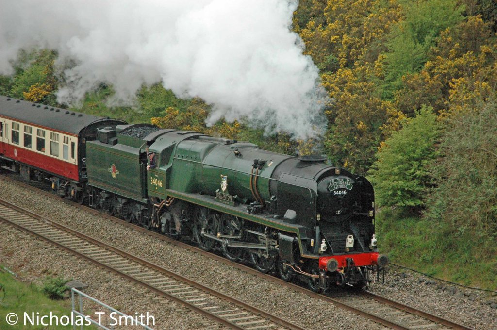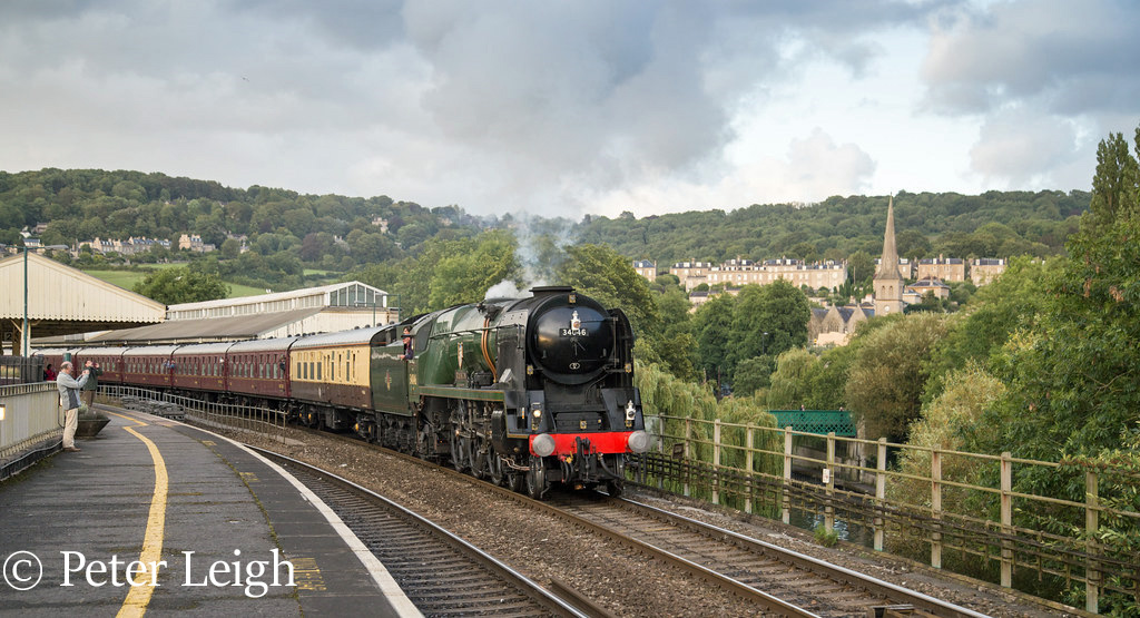 Whilst based at Bournemouth 34046 was mostly used on services between Waterloo and Weymouth but also ran on the Somerset and Dorset line between Bath and Bournemouth.