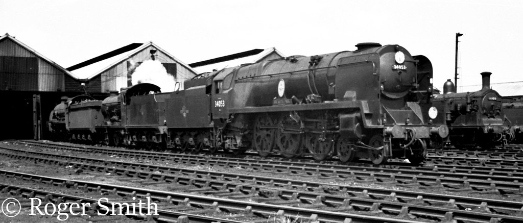 34053 was withdrawn in October 1965 and towed to Barry scrap yard in South Wales the following March. Its arrival was delayed by several weeks, as there were some connecting rods in 34053’s tender which struck a bridge near Chandler’s Ford. The convoy of locomotives were left at the east siding of Romsey station for several weeks. After its eventual arrival at Barry it somehow avoided the cutter’s torch for a further 20 years.