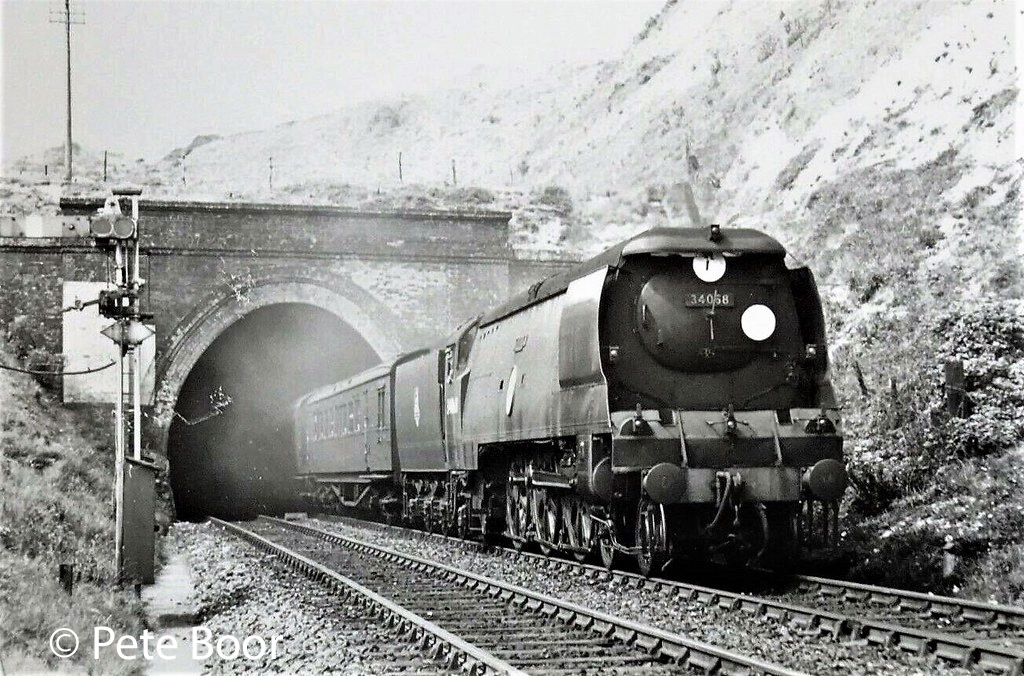 The locomotive was rebuilt in March 1960 and the air smoothed casing was removed and 34058 continued in service until withdrawal in October 1964, having only a brief life as a rebuild and covered 812,568 miles in total in service.