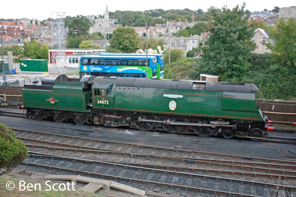 In 1992, 257 Squadron moved to the Swanage Railway, initially to be used for Firing and Driving courses until 1993. At the time the railway was suffering some financial problems and it seemed unlikely that they could afford to hire and operate the locomotive but by the spring of 1993 matters had improved and an agreement was reached with the Railway to operate 257 Squadron for that summer. It proved a highly successful attraction, particularly to the enthusiast as Bulleid light pacifics were regular performers on the Swanage branch, and the locomotive has continued to operate at Swanage.