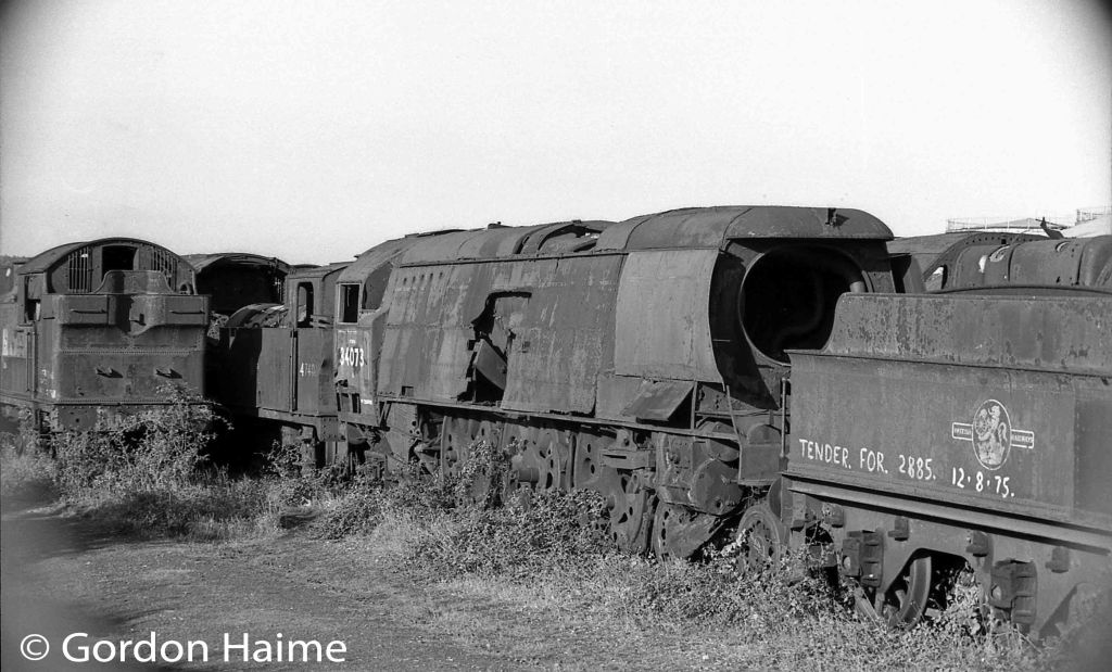 In 2006 it moved to the East Lancs Railway after being stored by Ian Riley. At that time Riley had a stake in 34067 Tangmere and 34073 donated donate parts of its valve gear to that locomotive which had suffered a catastrophic failure while hauling a mainline excursion, causing its valve gear oil-bath to be punctured whilst running on the main line.