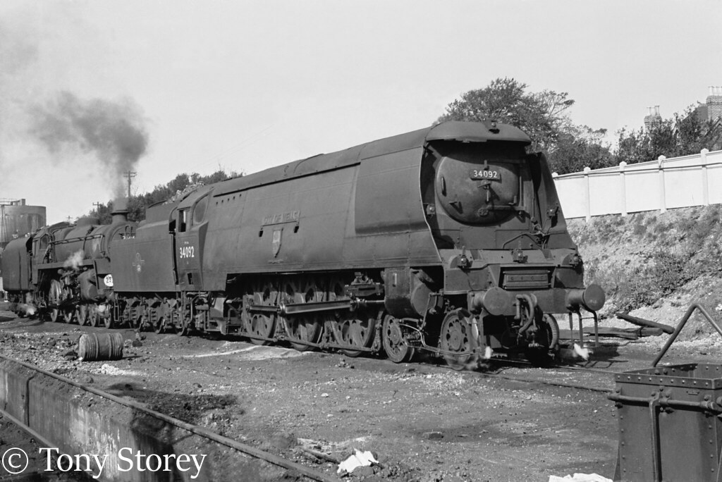 34092 was constructed at Brighton Works in 1949 and later that year it was named Wells which was changed to City of Wells in 1950. It was initially allocated to Stewarts Lane where it worked out of Victoria to the Kent coast.