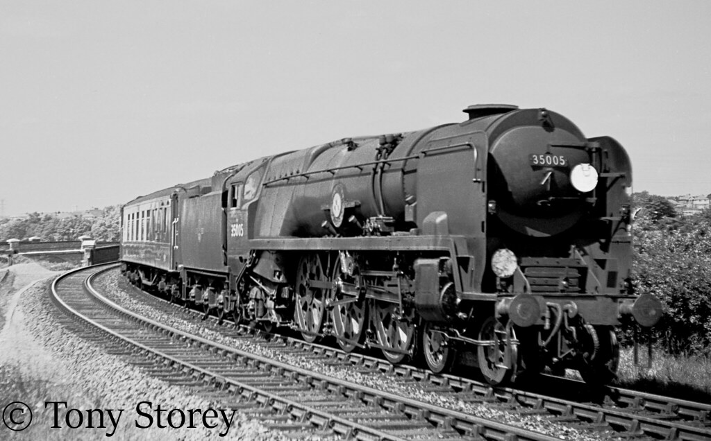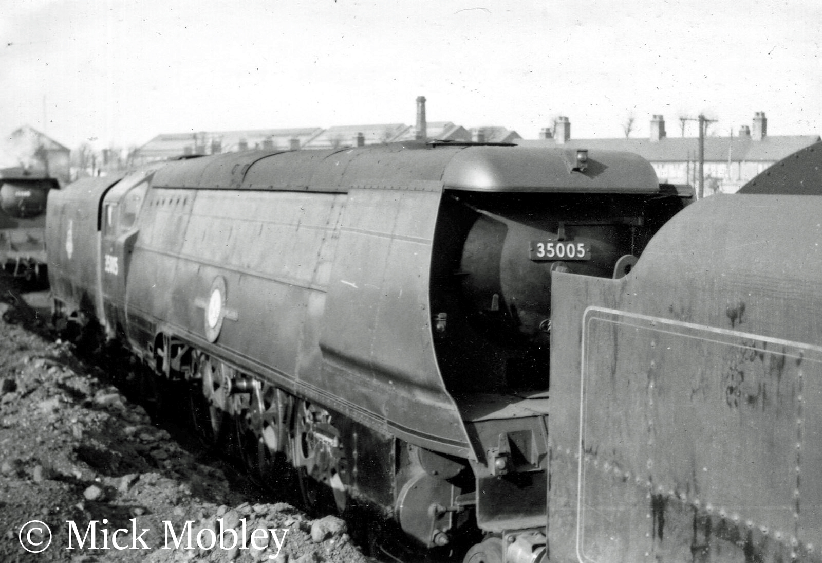 In October 1965 it was withdrawn from Weymouth shed after running for 976,806 miles whilst in service and sold for scrap to Woodham Brothers at Barry and arrived there in January 1966. It was the oldest of the Bullied Pacifics sent for cutting up at Barry. 35005 stayed at Barry until March1973 when it was the first MN to be rescued.