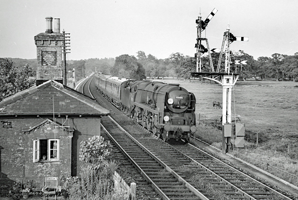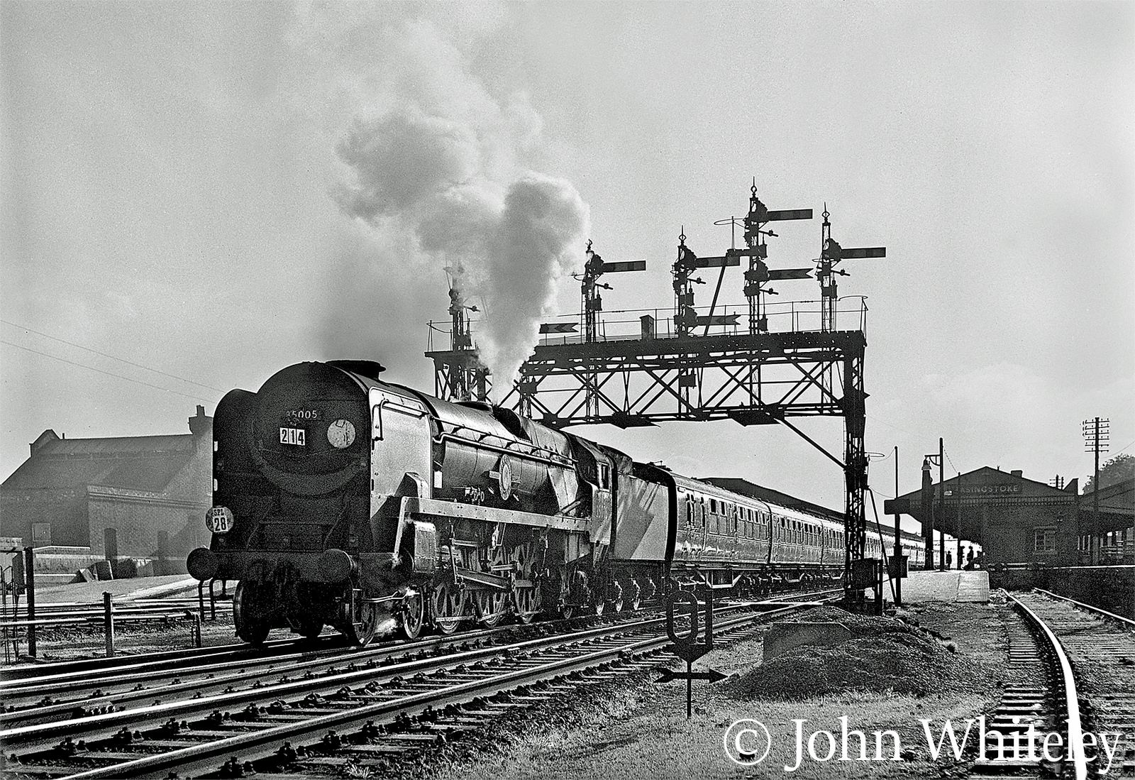 “The crew on the 105mph run, which took place on My 15th 1965, was driver Gordon Hooper and fireman Dave Wilson, both of Nine Elms; also on the footplate was “technical” Inspector Brian Smith. The train was the 21:20 waterloo-Weymouth and the load was 9 + 1 van of 365 tons. Also established was a record, which still stands, for the start from Waterloo to the stop at Basingstoke of 41 mins 30 sec net and 43 min 46 sec actual*. There is a detailed account of the run, from the footplate and written by the fireman, which can be found in Part IV of his book “In Memory” – https://www.amazon.co.uk/dp/B07NK31X38”.