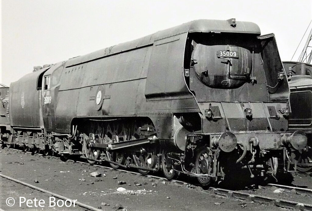 The remnant bits were then purchased by Ian Riley in 2003 and taken to his Bury works. By 2009 it lay dismantled at Bury and had previously been offered for sale but no acceptable offers were forthcoming and now 35009 is being restored at Ian Riley’s Engineering and it is planned to return the locomotive to main line running. It is suggested that it will be turned out in BR blue livery and may even be returned to an un-rebuilt state.