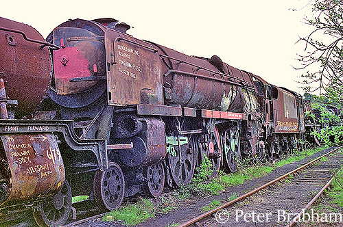 The first two (92085 and 4156) were duly dispatched, then the workforce stopped for their two week summer holiday. By the time the workers returned more wagons had arrived and 35025 was reprieved for a second time. The threat however of further disposals focused the minds of all involved in attempting to rescue the locomotives in the yard.