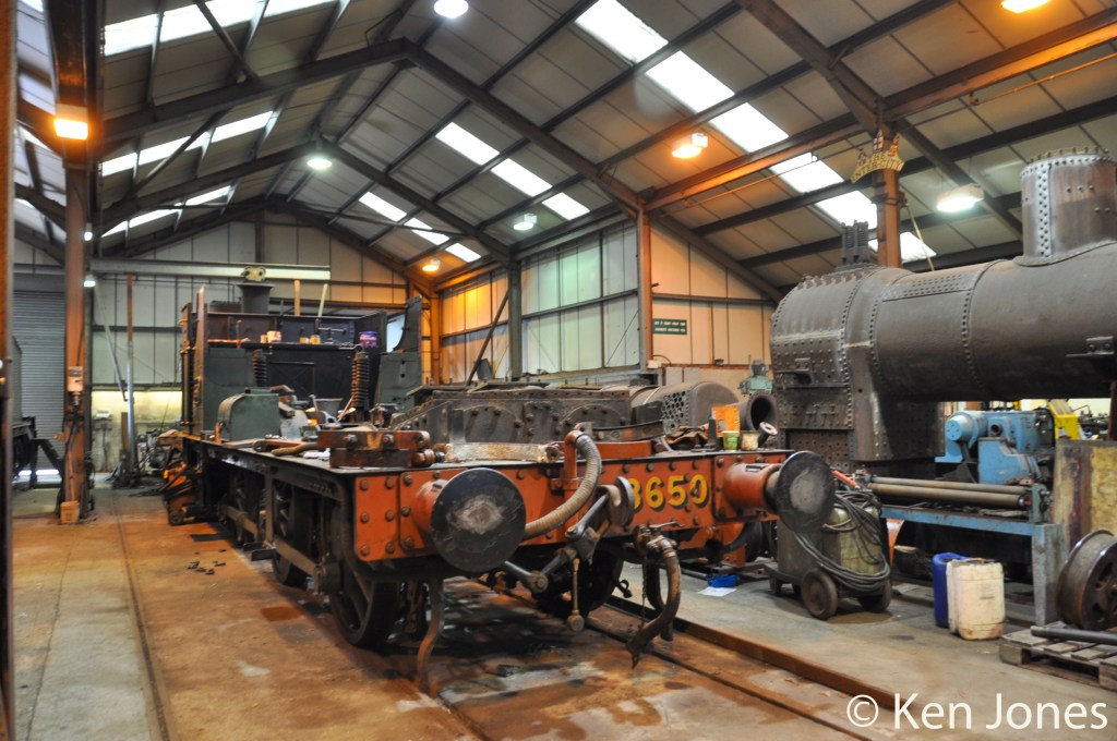 Didcot already had a 5700 class pannier (tank 3738) which was acquired from Barry scrap yard in 1974. 3738 was in better condition than 3650 so it was but lacked the non ferrous pipe work and fittings which had been removed whilst at Barry. It was decided to use 3650 as a source of spares for 3738 being a far easier restoration project. As a result 3738 was working again in two years.