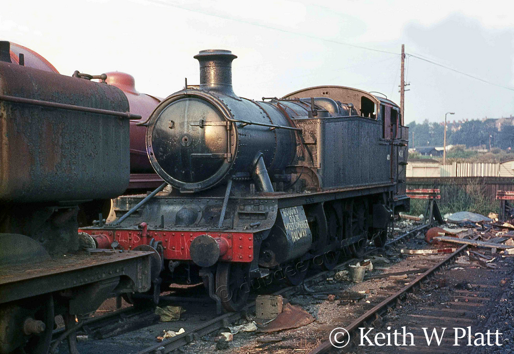 It was sold for scrap to Woodham Brothers at Barry and entered the scrapyard in August 1965. It remained in the Woodhams scrapyard at Barry until May 1979 following its purchase for preservation by the Great Western Preservation Group at Southall Railway Centre. It was the 100th locomotive to leave the Barry scrapyard.