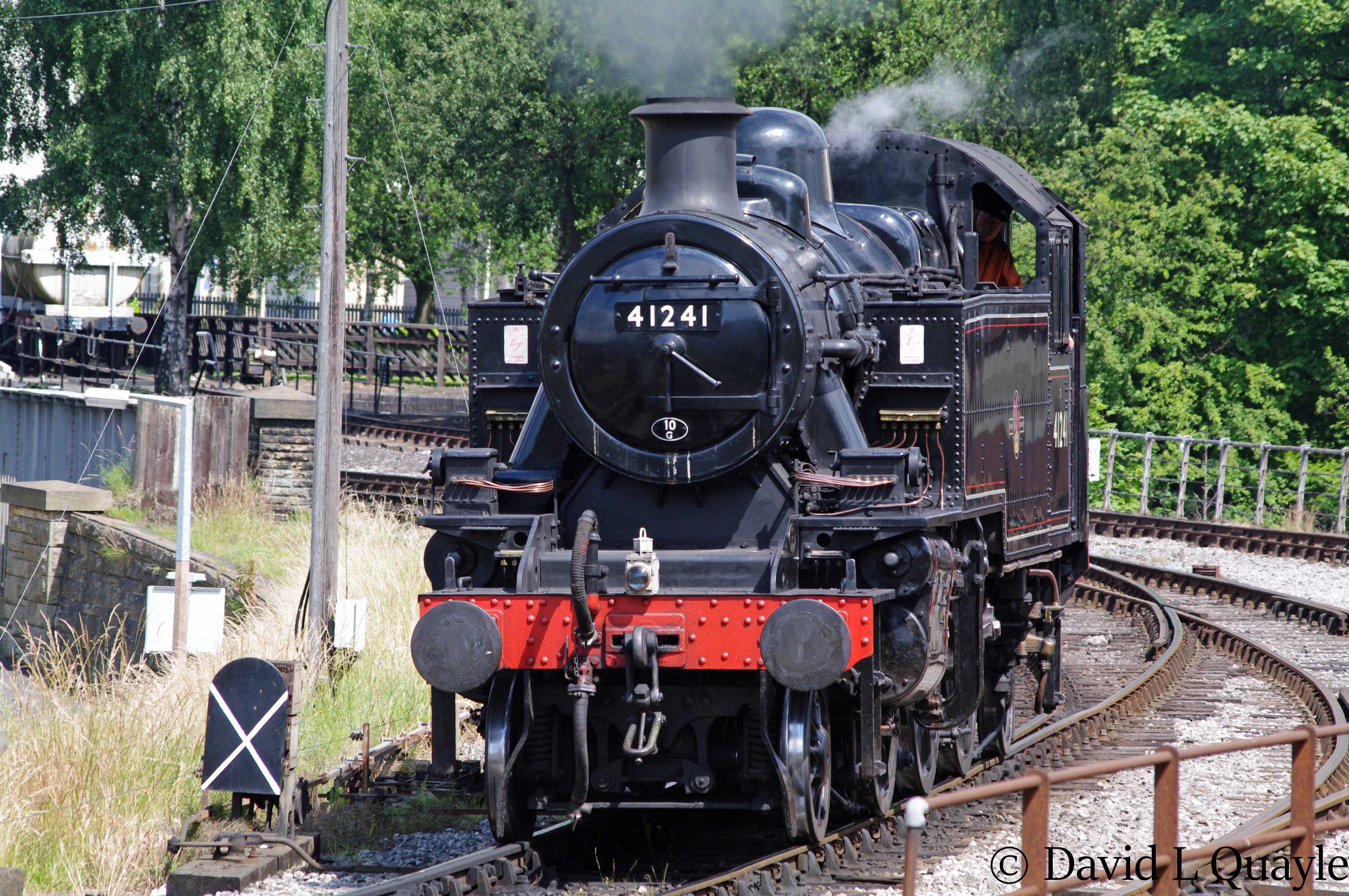 Astonishingly, the move was made and at least one Keighley & Worth Valley Railway (KWVR) volunteer remembers it passing his school in Keighley as it arrived from Skipton more or less every day, light engine, about noon. On arrival 41241 was parked in the Banana Siding alongside the long demolished goods shed, where it stayed for about three hours doing absolutely nothing, rather than work the branch goods, had it still been open and operated. 41241 then went back to Skipton about 3.30 p.m. having done nothing at all. It did this utterly pointless exercise for at least two years, presumably employing at least two men and burning lots of coal; a remarkable comment on the objectives of a nationalised industry.