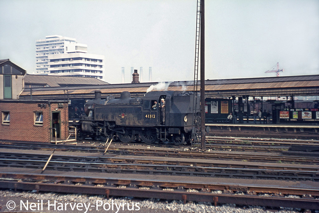 In March 1963 it was reallocated to Brighton where it spent a year before moving on to Bournemouth where it worked over the Swanage and Lymington branches. 41312 performed the last steam service on the Lymington branch in April 1967. The last 3 months of its career were spent at Nine Elms acting as a station shunter for Waterloo. It was finally withdrawn from service on the 3rd July 1967 and sold to Woodham Brothers at Barry for scrap.