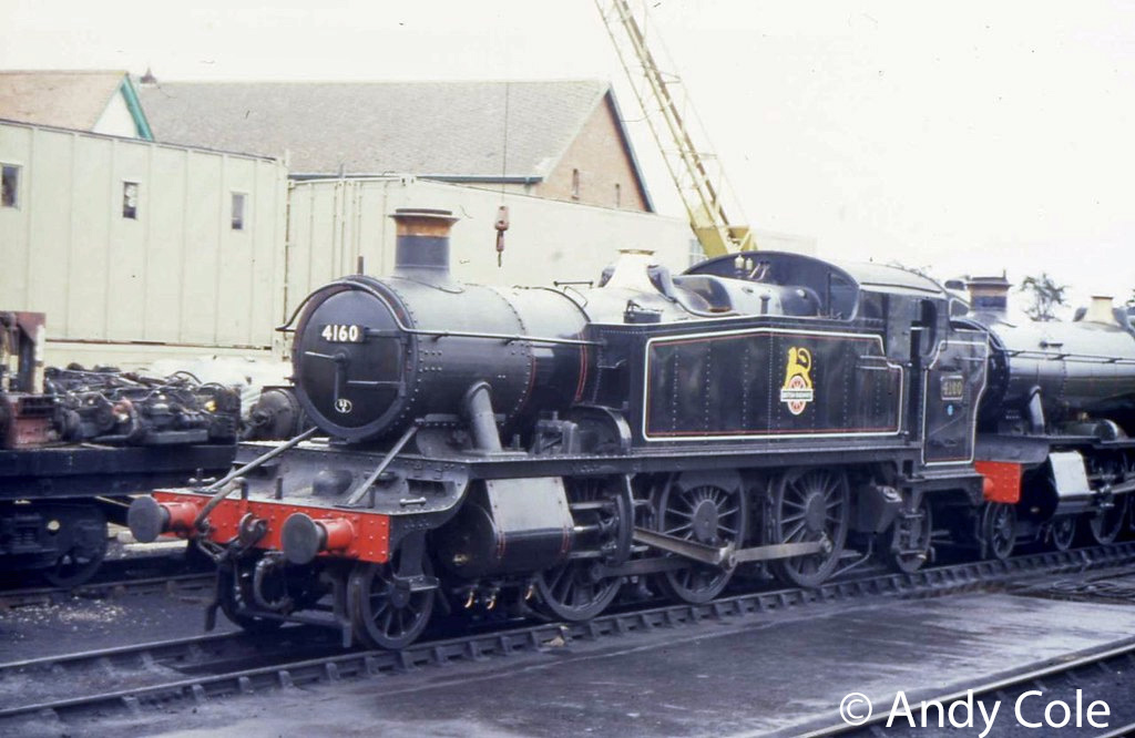 4160 had further overhauls at Swindon in 1954, Caerphilly in 1956 and again at Caerphilly in 1958/59. It was put into store in September 1962 as there was a lack of work for it – mainly due to the introduction of diesel multiple units.