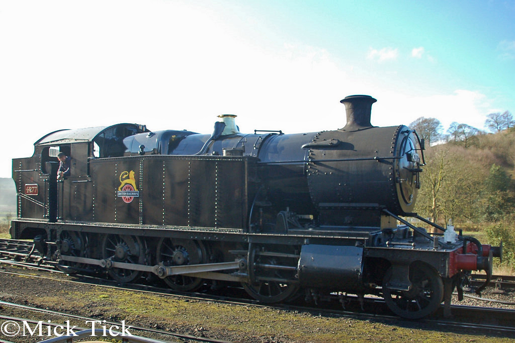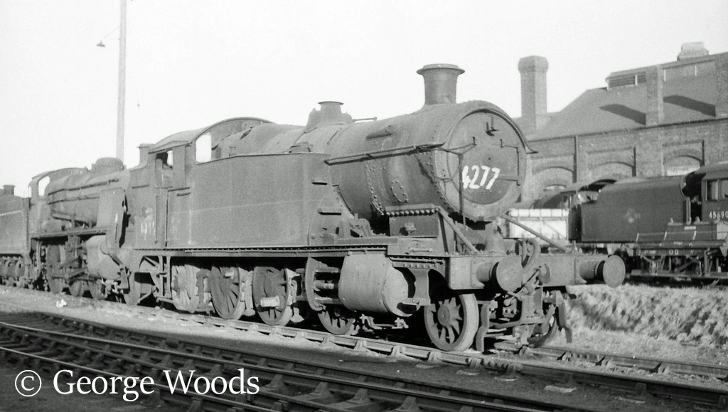 4277 was built at the GWR’s Swindon Works in 1920, Works No. 2857. It was painted in unlined green livery with “Great Western” on the tank sides. From 1934 a round GWR logo replaced the lettering, and this in turn was replaced in 1942 by the letters “G W R”.