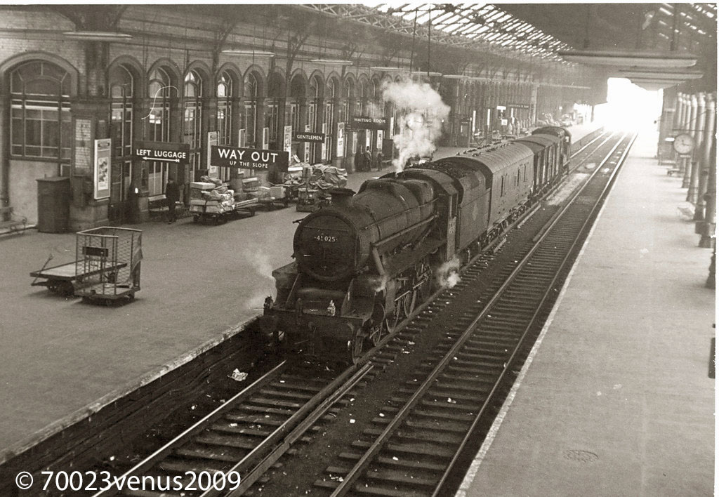 From February 1968, 45025 was regularly rostered on the last BR steam hauled named train (Belfast Boat Express) from Manchester to Heysham. It often achieved a speed of 80mph whilst hauling this train before ceasing to do so in May 1968.