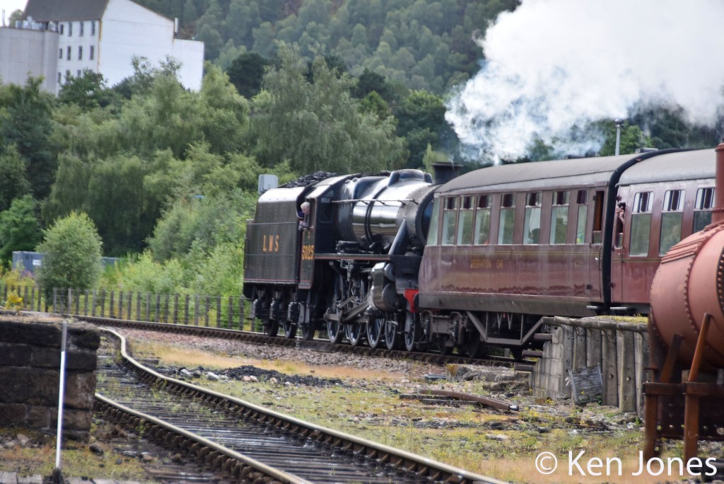 The locomotive was purchased by Scottish railway heritage pioneer, Ted Watkinson, in the late 1960s for the proposed preserved railway between Aviemore and Grantown-on-Spey which was to become known as the Strathspey Railway. For a railway in the Highlands, the obvious locomotive was a Stanier-designed black five. Many of these operated out of Inverness shed in LMS and British Railways days from 1934 to 1960. They were affectionately known as Hikers by Highland railwaymen in recognition of their capability on steeper gradients.