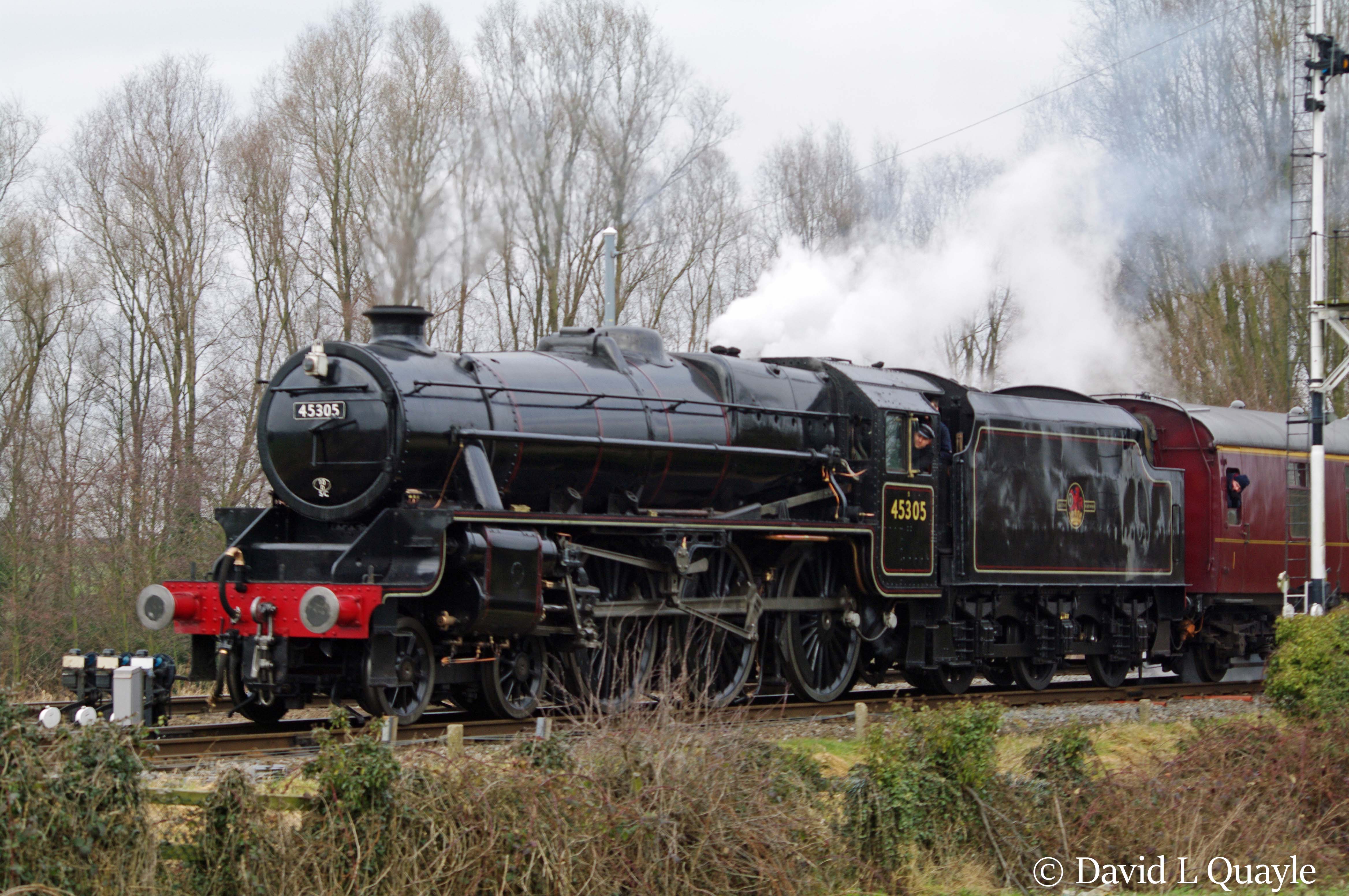 In 2013, 45305 worked the Liverpool to Longsight and return leg of the Fifteen Guinea Special to celebrate the 45th anniversary of the ending of steam on British Railways on Sunday 11 August. This trip also allowed the ghost of 1T57 to finally be put to rest.