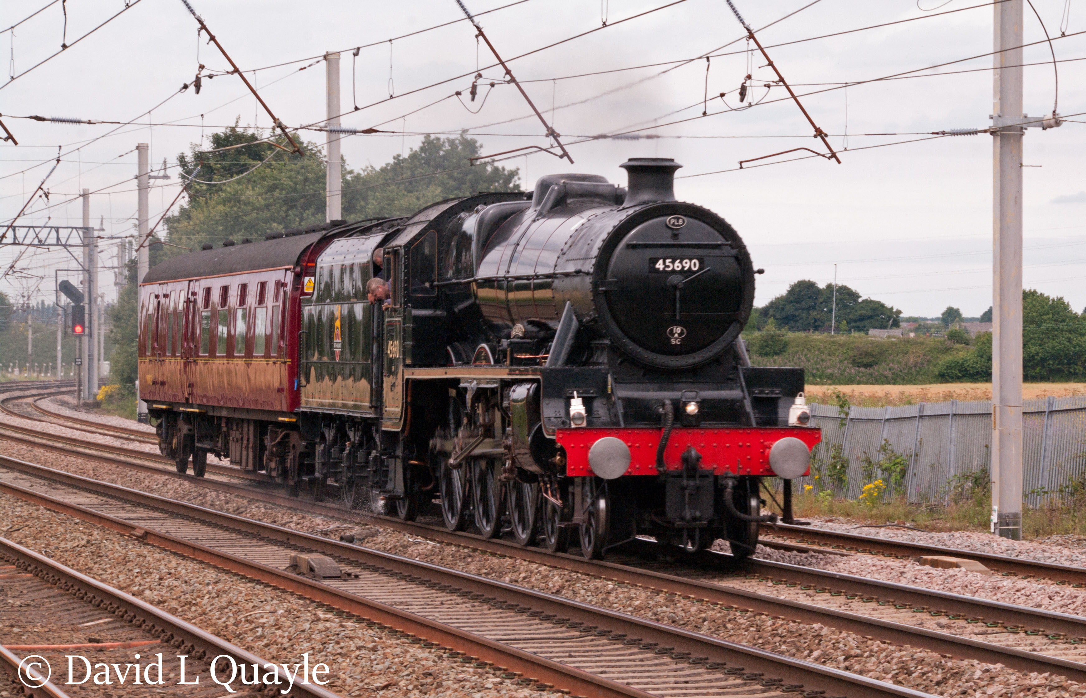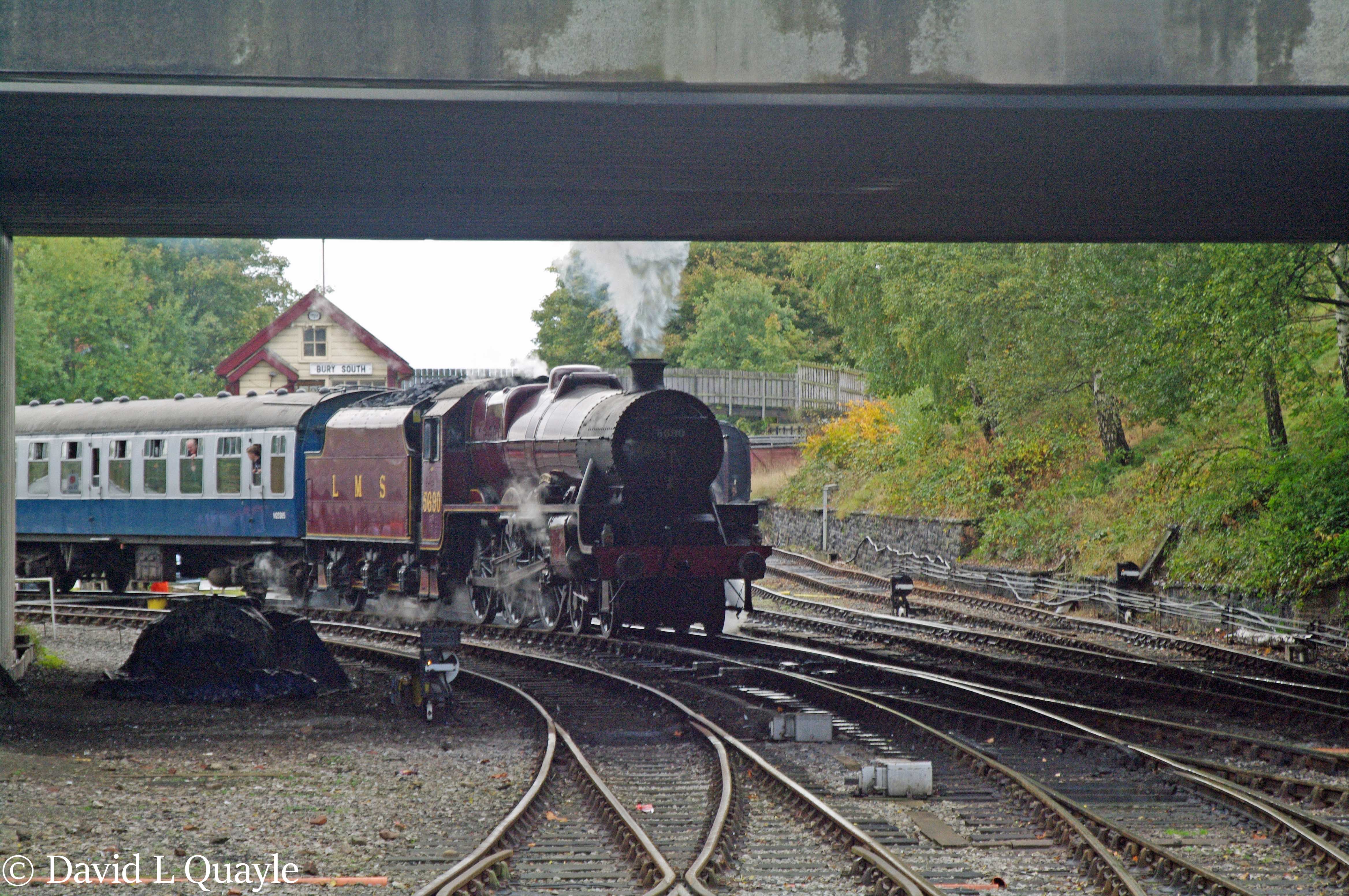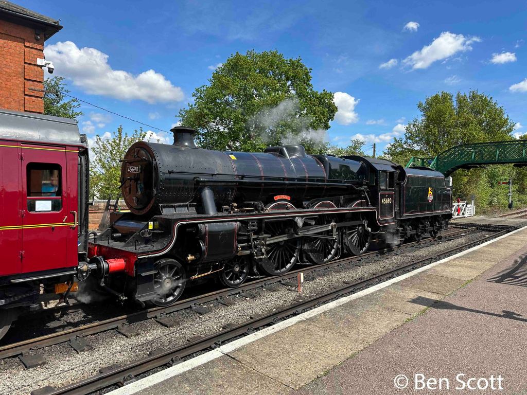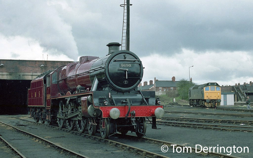 45690 was built at Crewe in 1936 as LMS 5690 and was based at Crewe North shed until it was transferred to Bristol Barrow Road in 1947. It remained at Bristol Barrow Road until withdrawn from service in July 1964 by which time it had accumulated 1,589,826 miles in service. This mileage equates to 45690 doing over 150 miles every day of its 28 years in service.
