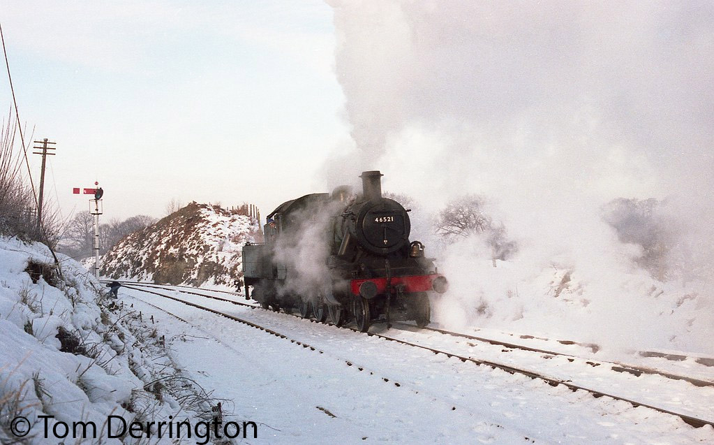 In 1969 46521 was selected for preservation by Severn Valley Railway (SVR) member Charles Newton. The locomotive arrived at the SVR on 20 March 1971 and entered service in July 1974, becoming the SVR’s first ex-Barry restoration to be completed. The locomotive initially carried the same green livery in which it finished BR service, although in 1975 both 46421 and 46443 (which was also at the SVR) were painted into red livery and given modified superstructures for filming of The Seven-Per-Cent Solution. 46521 was eventually withdrawn from service in 1977 for major boiler repairs.