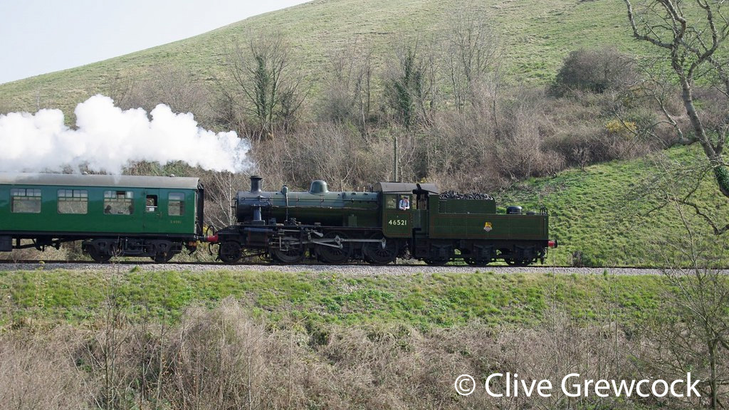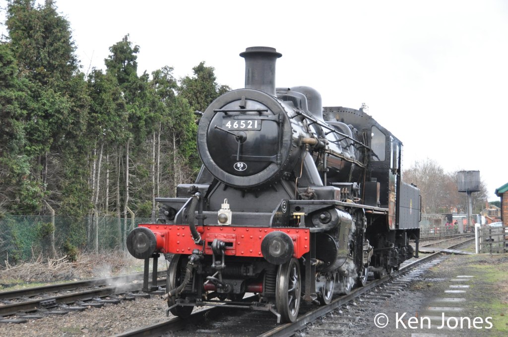 A third period of service began in 1991, during which 46521 spent the summer of 1993 on hire to the Gloucestershire Warwickshire Steam Railway, as well as taking part in the London Underground ‘Steam on the Met’ festival the same year. 46521 also featured as ‘Blossom’ in the BBC sitcom Oh, Doctor Beeching! which was filmed between 1995 and 1997. 46521 was formally named ‘Blossom’ by actor Steven Lewis in a ceremony in February 1997. 46521’s third period of service ended in 2000 by which time the locomotive had accumulated 84,031 miles since it was preserved.