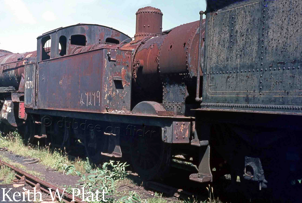 47279 was withdrawn from Sutton Oak in 1967 and sold to the Woodham Bros. scrap-yard in South Wales.