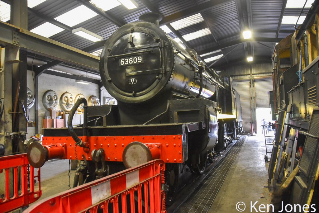 Following this 53809 spent some time on the North Yorkshire Moors Railway but was taken out of service there, before its boiler certificate expired, after failing a boiler inspection. It was then returned to the Midland Railway at Butterley where it has been having a full overhaul.