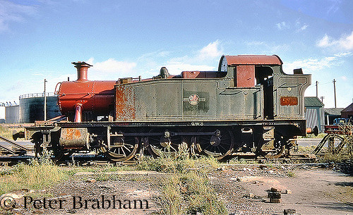 It was withdrawn by BR in April 1962, being sent to Woodham Bros of Barry for breaking up. It was bought by the Great Western Society in August 1971, and sent to its Taunton depot, being partially restored there before coming to Didcot in 1977.