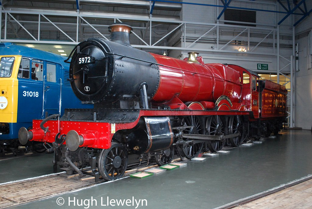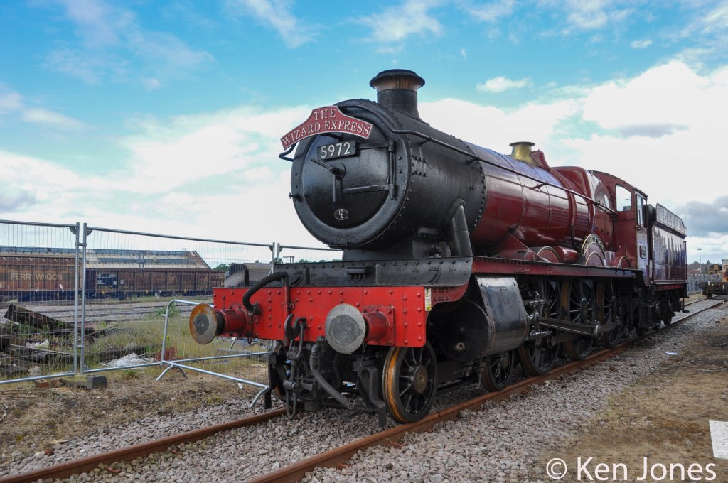 More latterly, 5972 Olton Hall has gained fame as the locomotive used in the Harry Potter film series. Owned by David Smith and painted red following its restoration to working order, the locomotive was selected for use as the engine for the ‘Hogwarts Express’ in 2001 and subsequently used in filming at Leavesden Studios,Kings Cross and also on the West Highland Line between Mallaig and Fort William between 2001 and 2010, painted in the fictitious ‘Hogwarts Railway’ livery and renamed as Hogwarts Castle. It currently carries a 10A (Carnforth) shedplate in recognition of its current home at Carnforth, although it often appears elsewhere in service or on display. 5972’s boiler certificate expired in 2014.