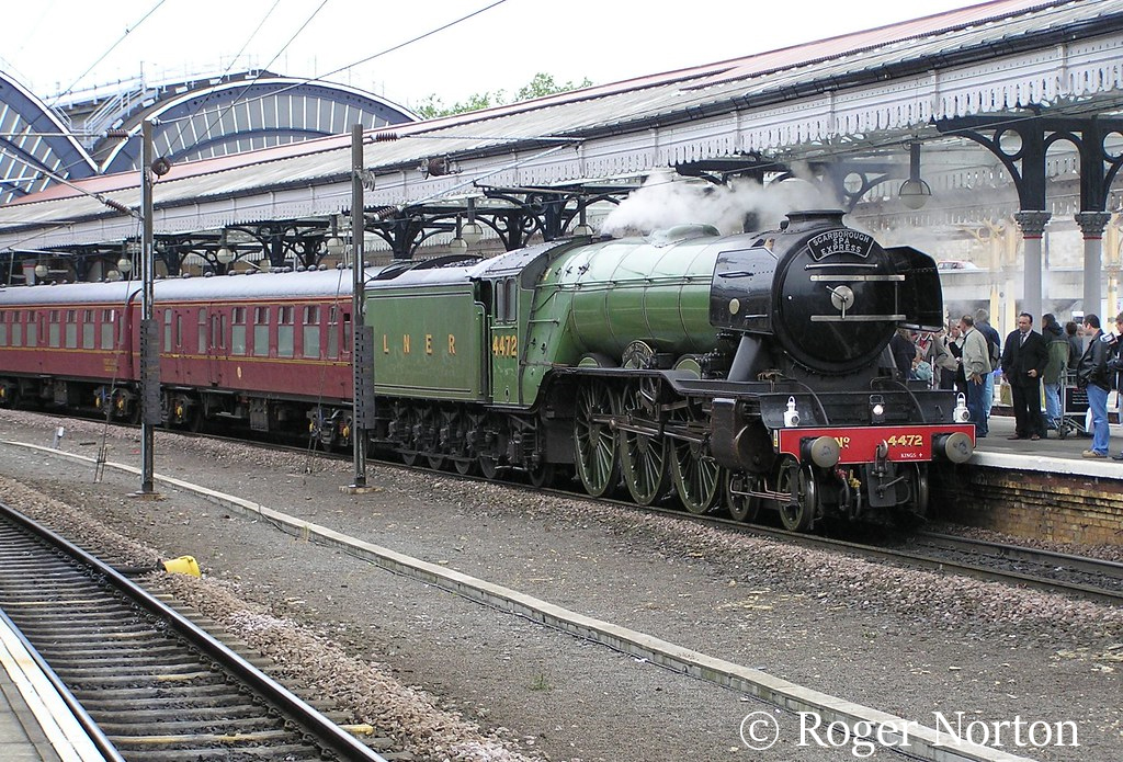 In 1924, number 4472 Flying Scotsman, renumbered and named for the occasion, was displayed at the British Empire Exhibition at Wembley along with the first member of the Great Western Railway (GWR) Castle Class, number 4073 Caerphilly Castle.