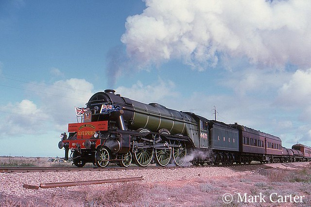 In 1988 4472 Flying Scotsman ventured abroad a second time, this time to Australia for the Bicentenary celebrations. During this visit, it set a new record for the longest non-stop run for a steam locomotive by travelling 422 miles non-stop. The previous record was set in 1948 by a number of locomotives when flooding caused the non-stop services from London to Edinburgh to be diverted over the Waverley route.