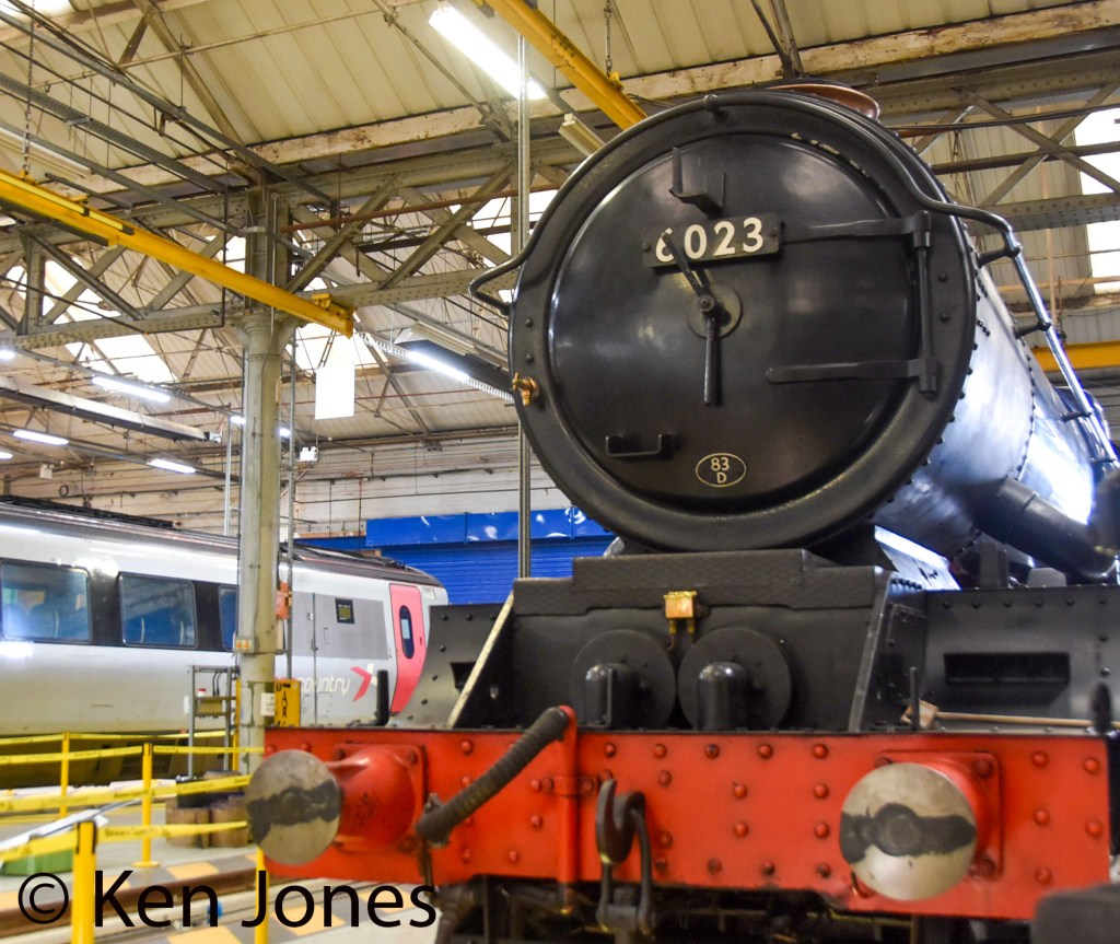 On return to Didcot, it was found that a number of copper firebox and boiler stays had broken, resulting in the need for a large amount of remedial work to the boiler. On 6 September 2012 the locomotive was moved to Loughborough on the Great Central Railway for firebox repairs, which were completed during early 2013. The locomotive then made a series of appearances on the Great Central Railway, for both testing and running-in purposes, but has since returned to Didcot where it is now being prepared to operate on the main line. In 2014, the GWS was given derogation by network rail to use a portable GSMR radio unit on 6023, saving money and enabling the unit to be used on the GWS’s locomotives yet to work on the mainline such as 2999 and 4079.