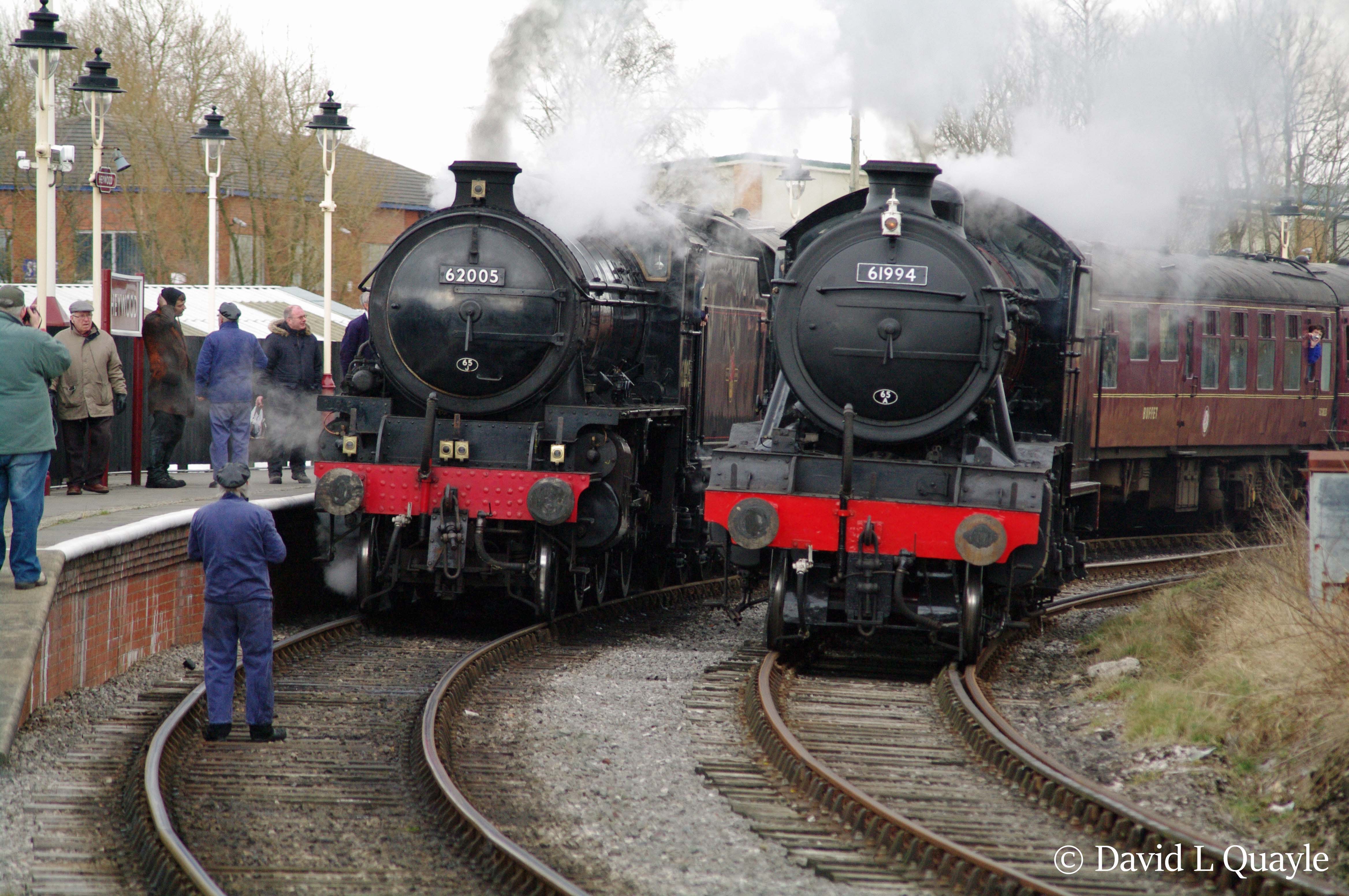62005 with 61994 The Great Marquess at Heywood on the East Lancashire Railway – February 2013