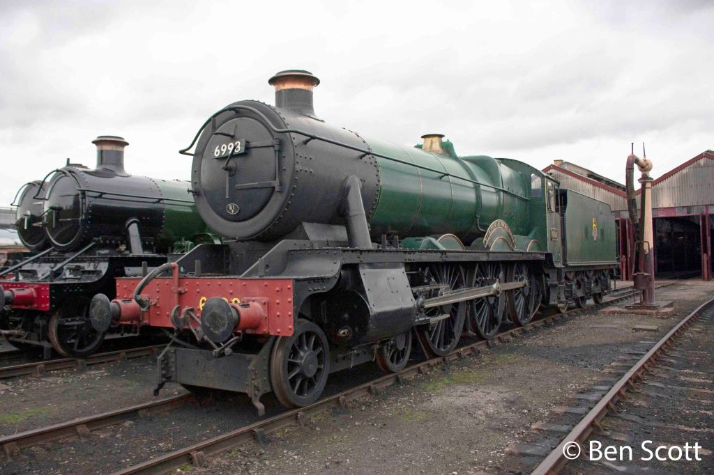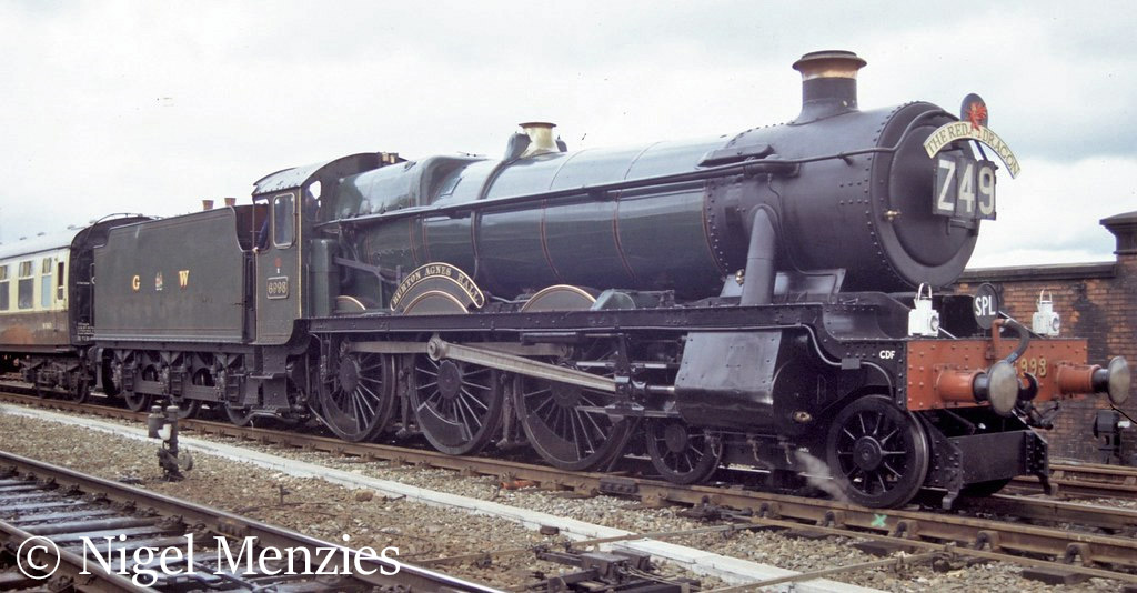 The locomotive was built by British Railways to GWR specifications at Swindon in January 1949, and named after the Yorkshire stately home. Initially based at Cardiff Canton, it was finally withdrawn by British Rail in 1966 from Oxford shed after being honoured as the engine chosen to work the Western Region’s last steam-hauled passenger train. In markedly better condition than the other survivors, it was selected by the Great Western Society to represent the typical two cylinder Great Western tender locomotive, no others at that time being expected to survive.