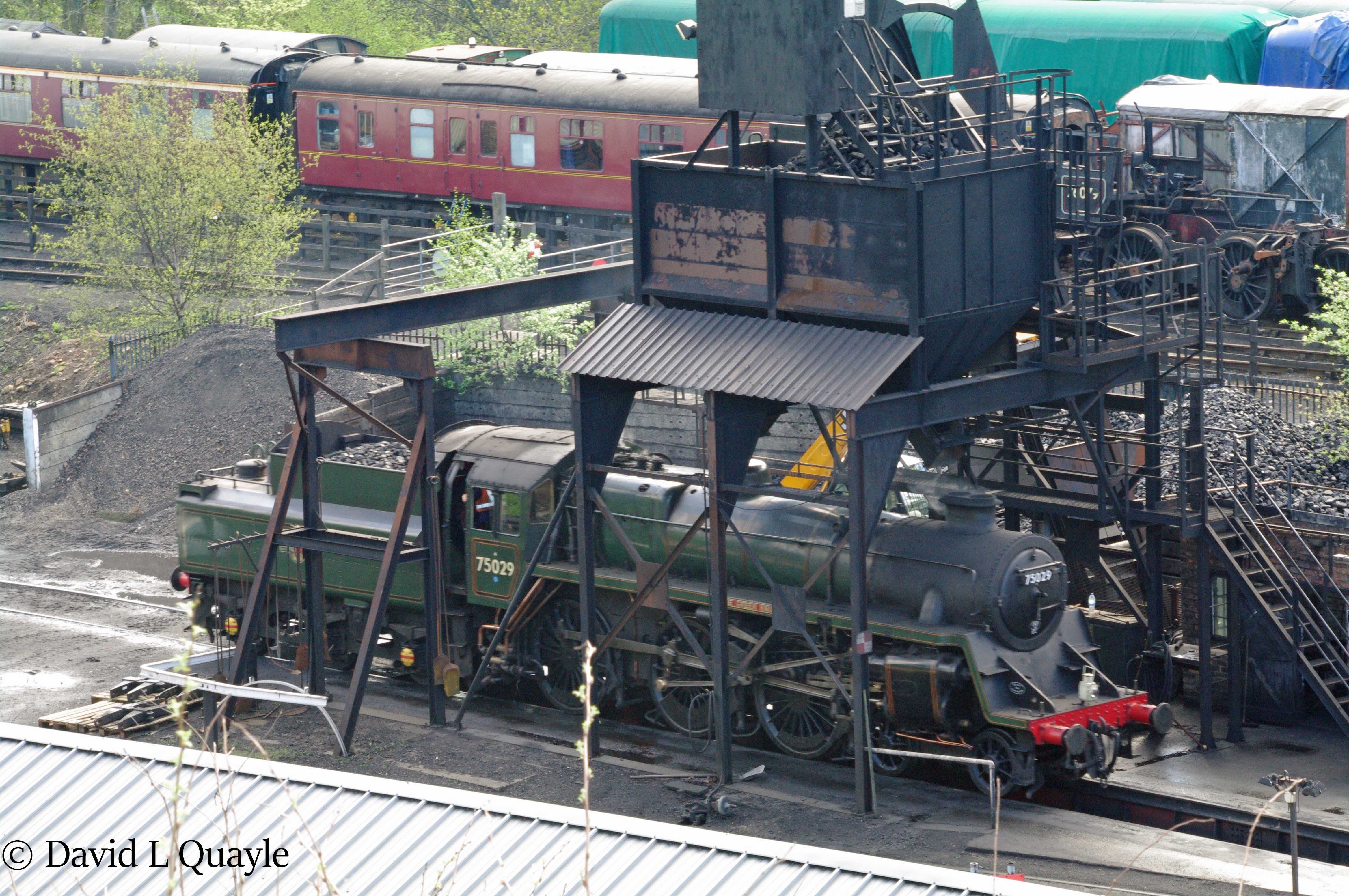 When the Longmoor Military Railway closed in 1973 75029 and 92203 were moved to a siding at Eastleigh for which BR charged £20 week rent. It moved to the East Somerset Railway during 1973.