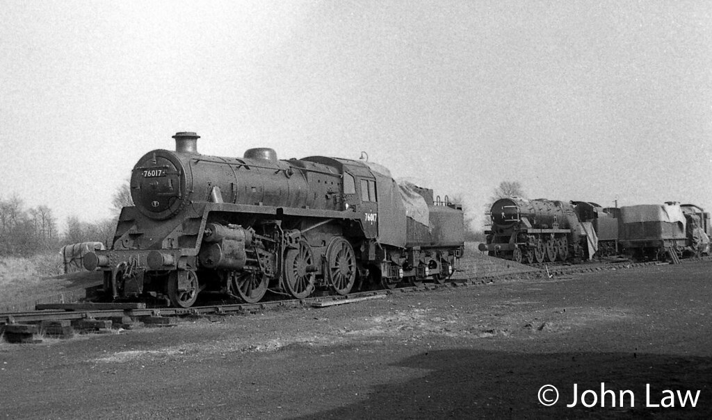 In September 1954 while working the 7:00am Banbury to Eastleigh goods, the driver lost control, and 76017 ran through the catch point and down the embankment. No one was hurt and 76017 was rescued by the Eastleigh and Fratton cranes.