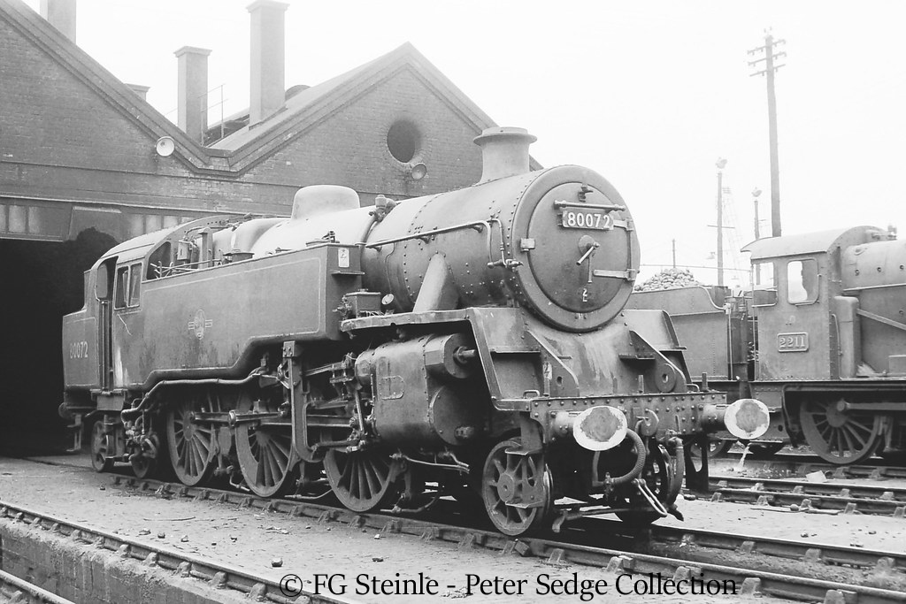 80072 started its life on the Eastern Region working on the London, Tilbury and Southend Line (LT&S) working commuter services out of London until that route was electrified in 1962. Most of the steam engines were transferred away immediately, but 80072 and a few others remained in London for a month or so and were used to shunt empty carriages to/from Liverpool Street Station.