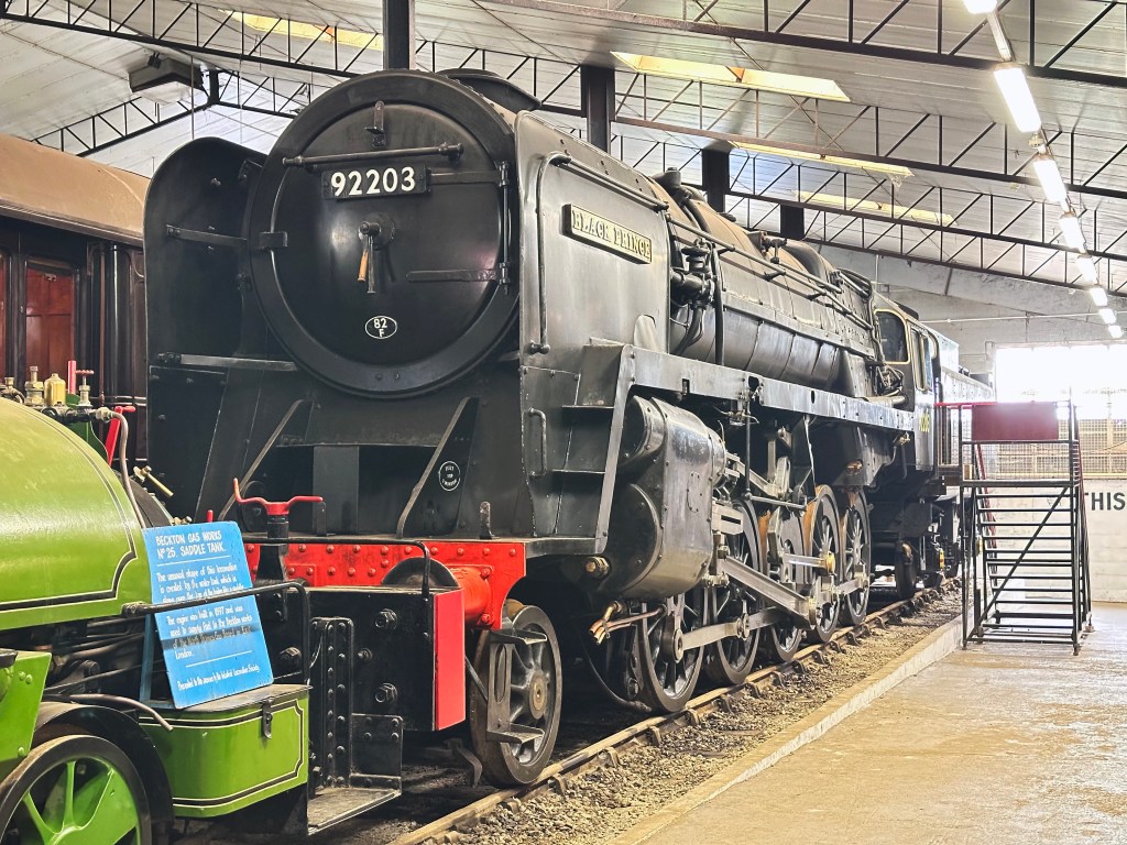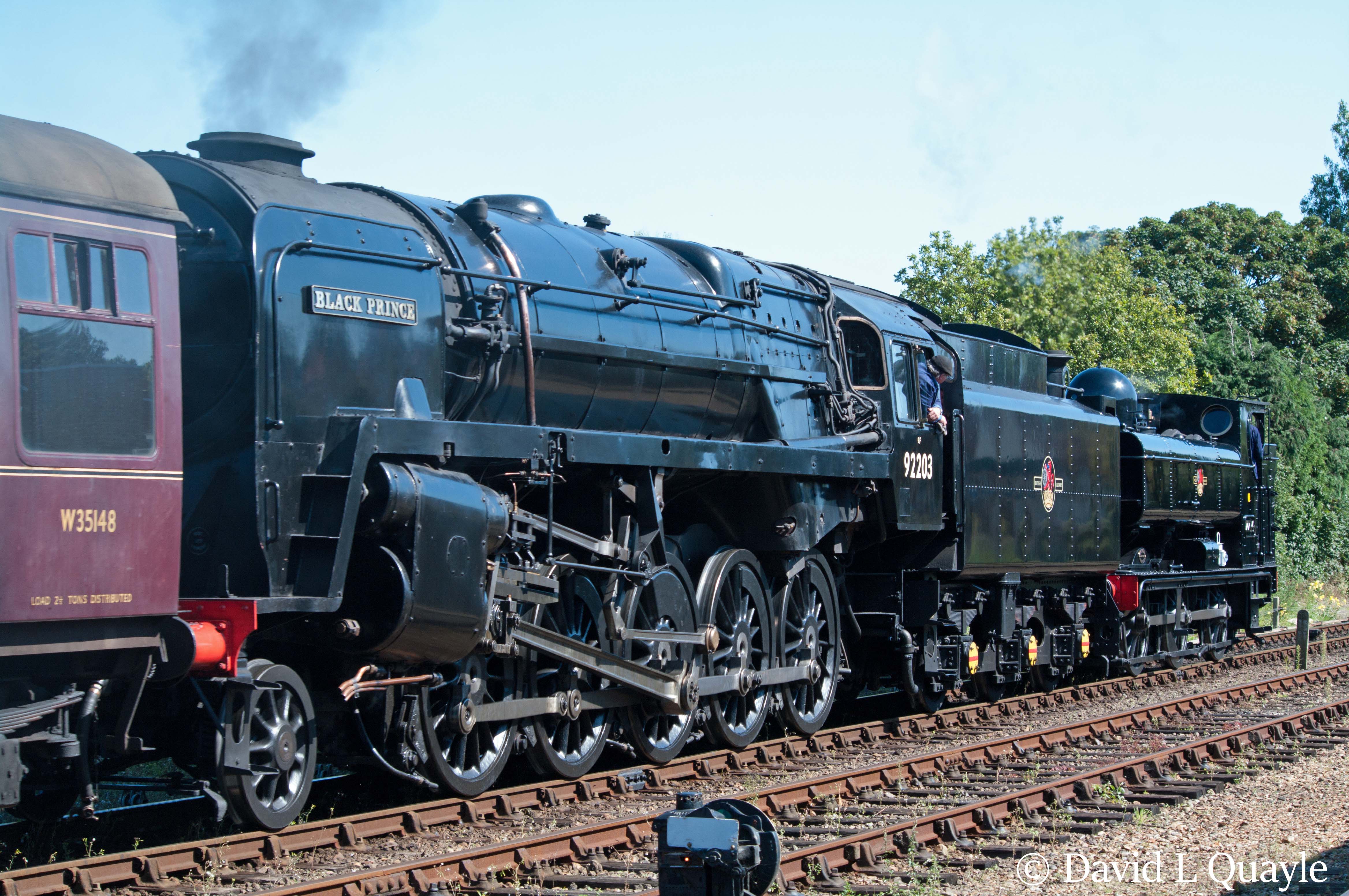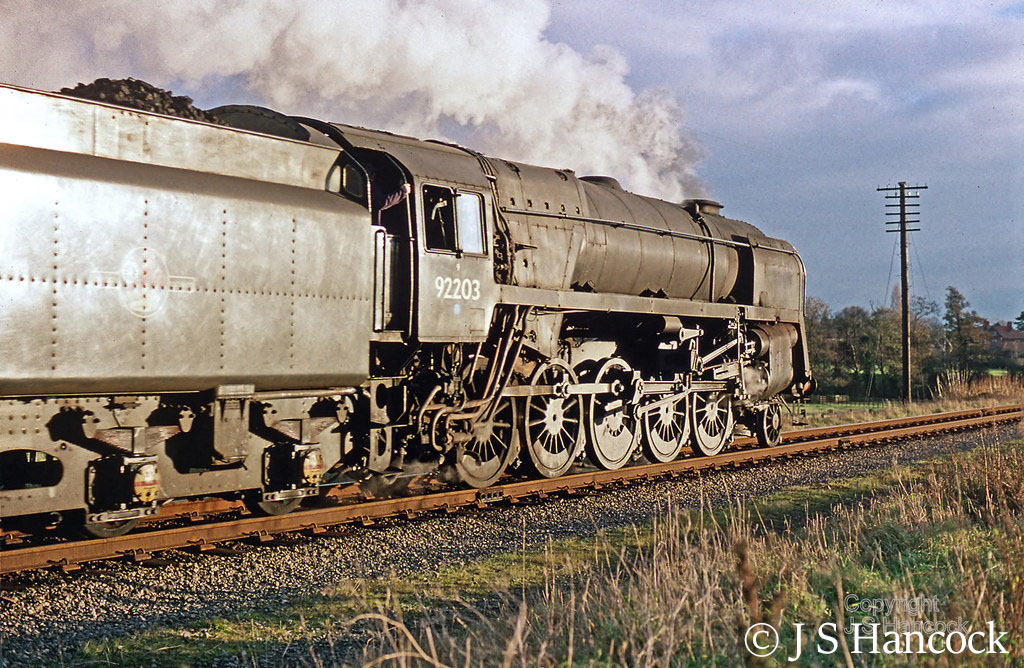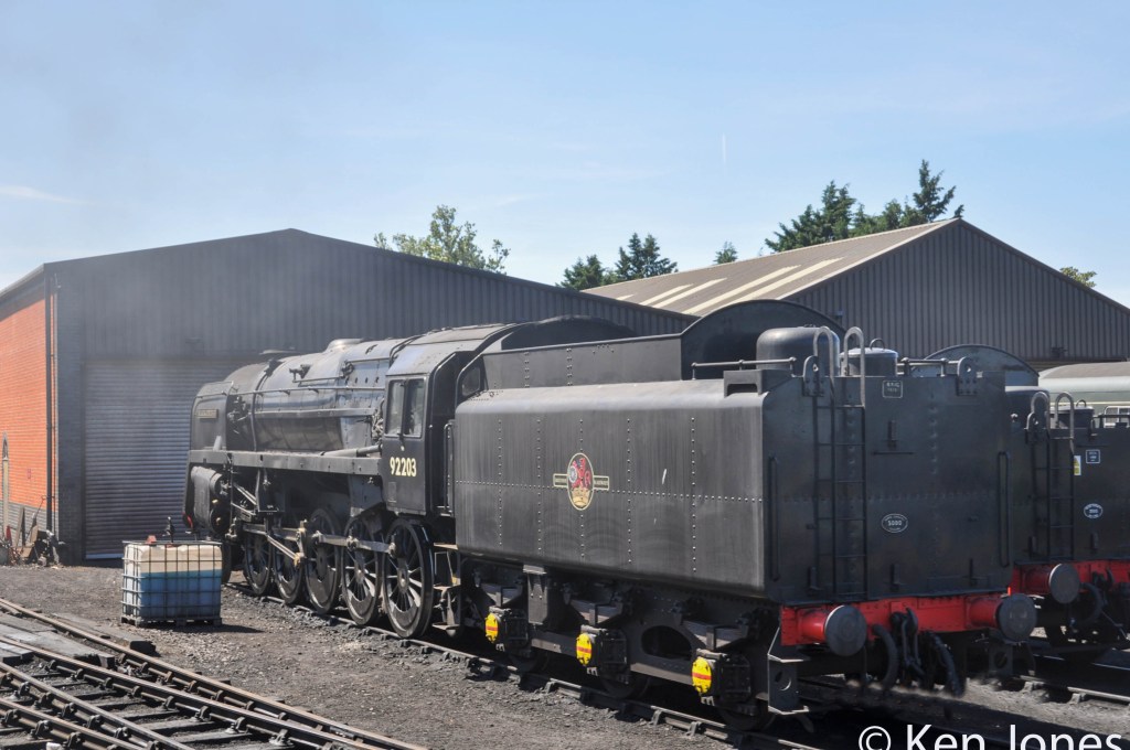 In 1973 92203 moved to the East Somerset Railway which David Shepherd was one of the founders of. It steamed from Eastleigh to Westbury and then on to Cranmore in November 1973. In April 1975 92203 ran from Cranmore to Eastleigh and back.