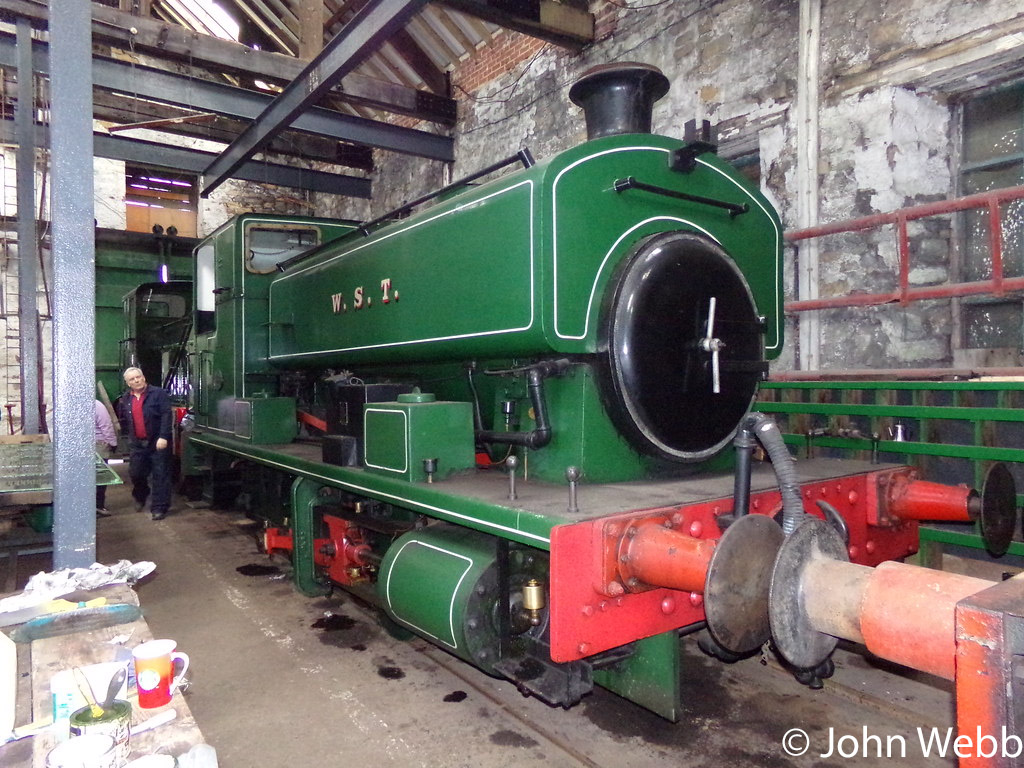 This locomotive was built in 1954 by Andrew Barclay and delivered new to Long Meg plaster and mineral Co Ltd at Carlisle. Here the locomotive was named WST after William Steuart Trimble who was the Deputy Chairman of the company.