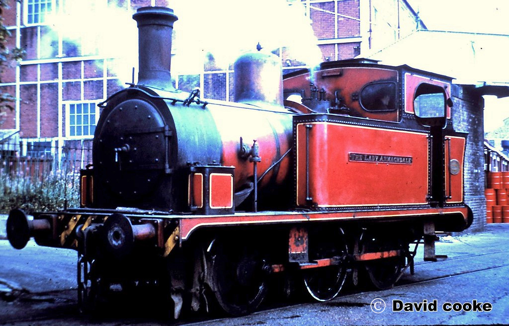 In 1963 a locomotive at ICI Dyestuffs Division at Blackley Manchester was damaged in a runaway accident. The locomotive was a Hawthorn Leslie saddle tank (Works No 3455 named The Lady Armaghdale after the wife of a former Chairman of the company). Rather than repair the Hawthorn Leslie, the company opted to purchase 686 as a readily available working replacement. 686 was duly repainted in ICI crimson livery and acquired the name The Lady Armaghdale, although the locomotive was never popular at ICI.The locomotive was used regularly at Blackley for transferring coal from the BR exchange sidings on the Manchester-Bury electrified line.