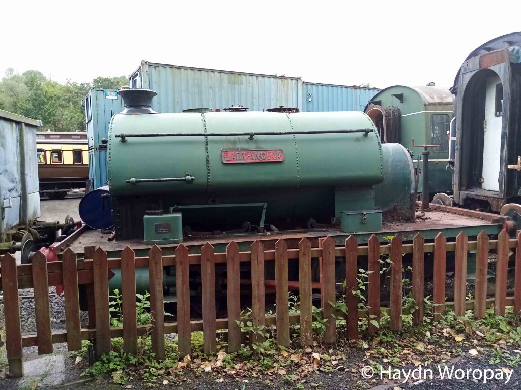 This class R2 locomotive was built by Peckett & Sons in 1926 and was supplied new to Gypsum Mines Ltd at Kingston-on-Soar in Nottinghamshire. It was given the name Lady Angela after the second Lady Belper, the wife of the owner of the estate where the mine was situated. It spent its working life there through several changes of ownership until replaced by diesel traction.