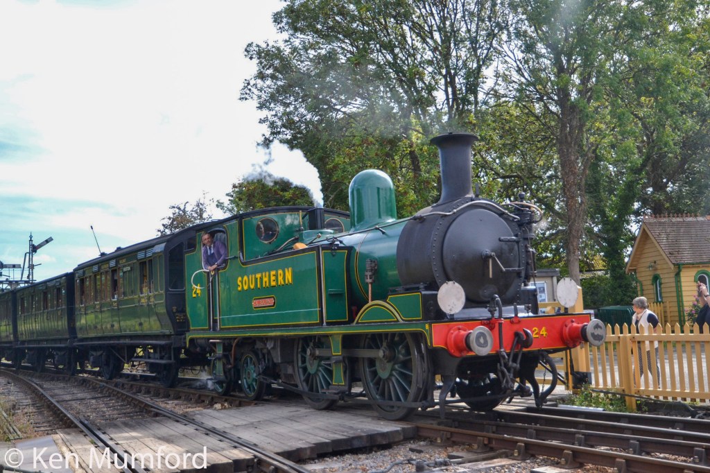 The locomotive was transferred to the Isle of Wight in 1925 as the island’s locomotive stock needed major modernisation, it was re-numbered W24 and given the name Calbourne, after a village on the island. The locomotive was fitted with Westinghouse air brake equipment to allow it to haul island passenger carriages, and had an extension fitted to its coal bunker to increase its range of operation.
