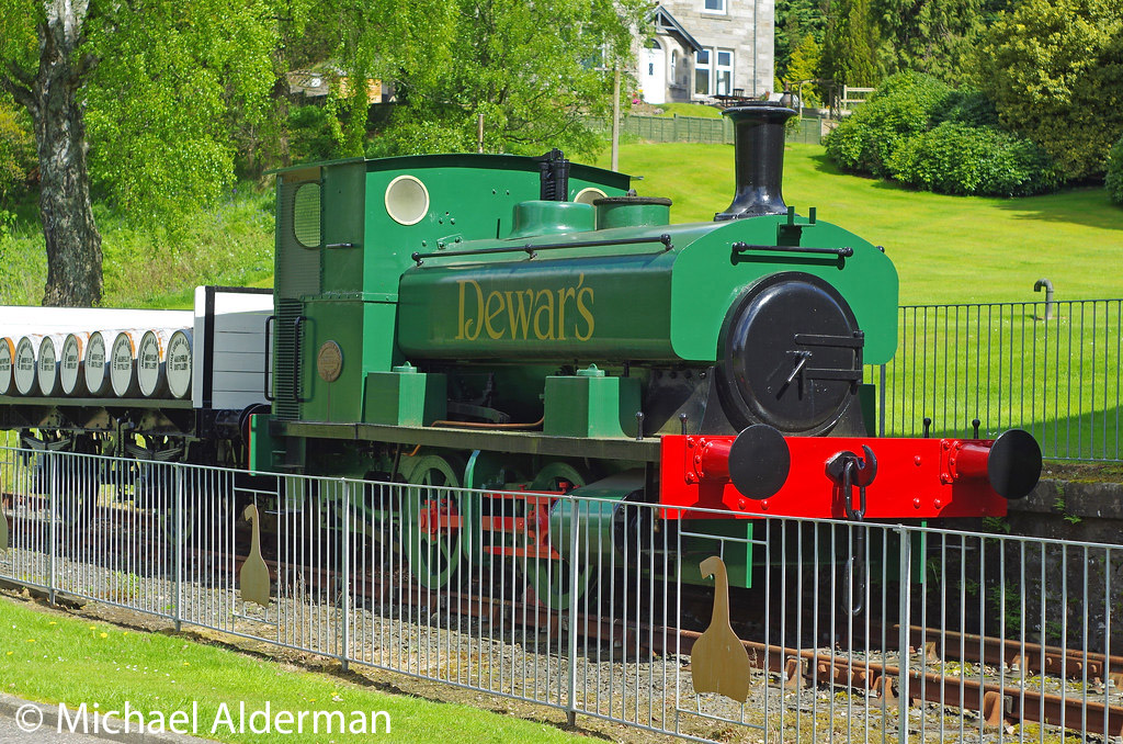 In 2000 Dewar’s World of Whisky was opened at the Aberfeldy Distillery and this locomotive was placed on static display there.
