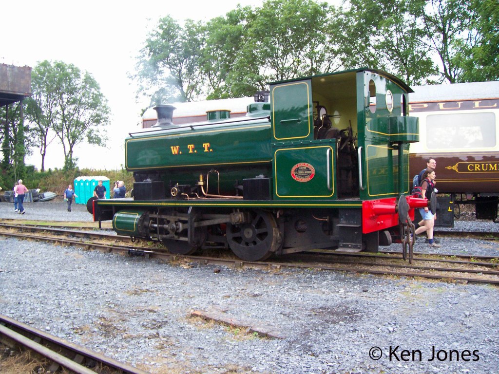 The owner of this locomotive had it repainted from its faded green version of the W T T livery to blue. The owner then sold the locomotive to another private buyer who repainted it in a green coronation livery and attached Coronation nameplate from a Hunslet locomotive.